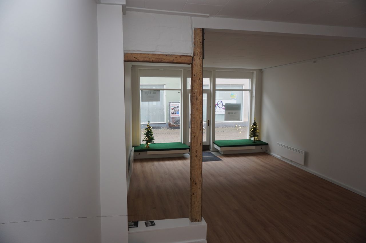 Stort butiks/klinik lokale. Hele lejemålet er renoveret med nye gulve og vægge. Toilettet er renoveret med ny sanitet. Der er opsat nye el varme radiatorer. Mulighed for at etablere tekøkken.
