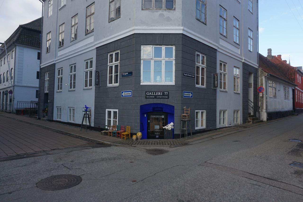 Erhvervs ejerlejligheden består af flere lokaler med en riddersal, som centrum. Ejendommen har gennem de sidste 40 år, været benyttet som antikvitets butik og riddersalen har været benyttet som selskabslokaler og udgangspunkt for ejerens guidede byture i indre Helsingør.